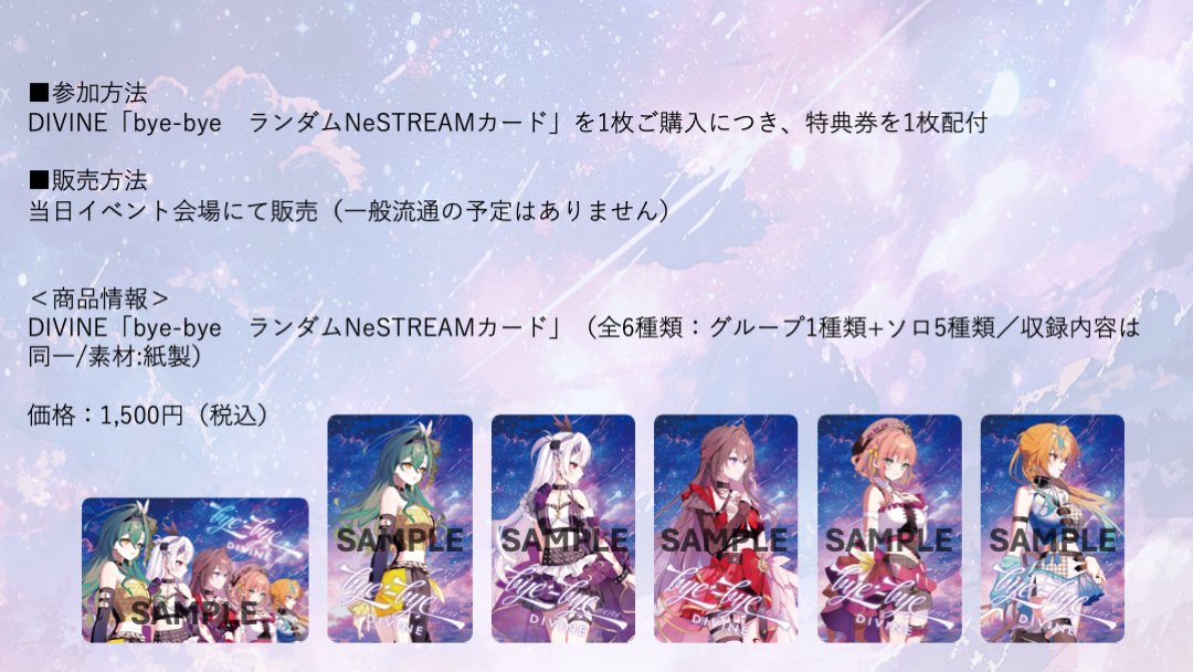 DIVINE「bye-bye ランダムNeSTREAMカード」を1枚ご購入につき、特典券を1枚配付